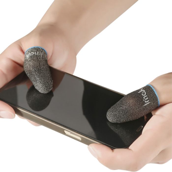 1 par touch finger sleeve från IMAK i svettsäker nylonfiber, lämplig för gaming på mobila enheter.