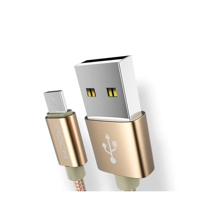 ROCK 1m Micro-Usb Nylon Kabel - Guld