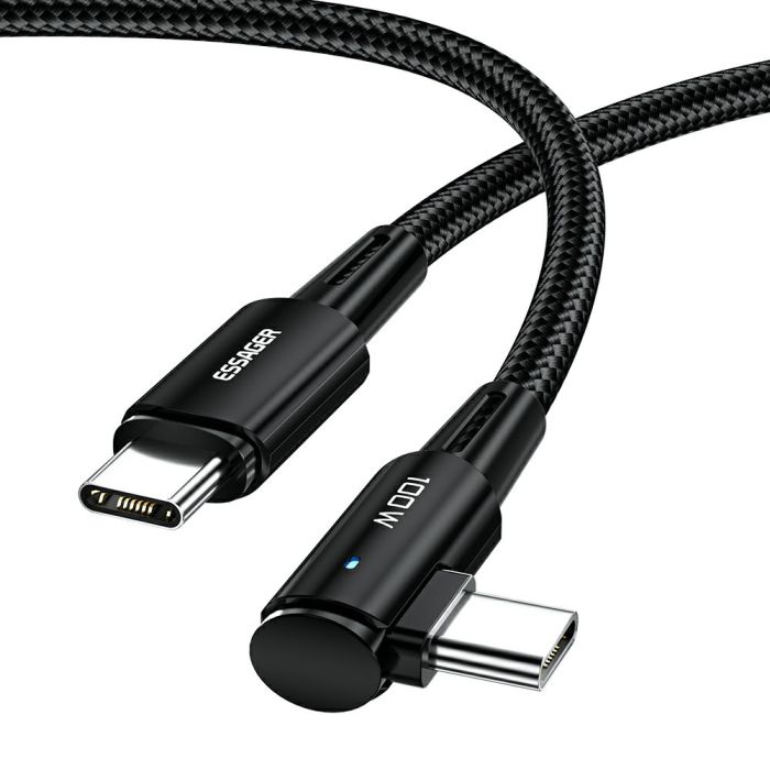 ESSAGER 2m 100W PD USB-C - USB-C Elbow Laddningskabel Svart