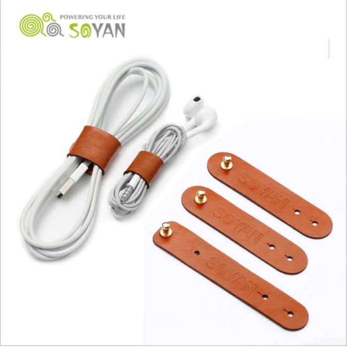 SOYAN 3-PACK Kabelhållare I PU-Läder Brun