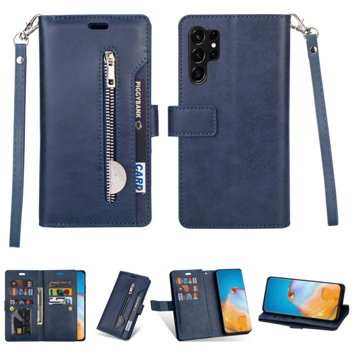 Galaxy S23 Ultra Fodral Multifunktionell Med Frontficka Blå