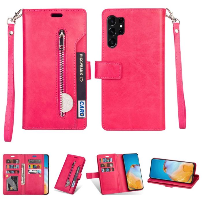 Galaxy S23 Ultra Fodral Multifunktionell Med Frontficka Rosa