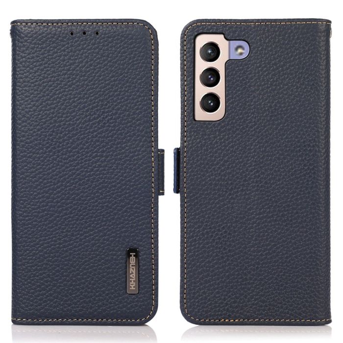 KHAZNEH Galaxy S23 Plus Fodral Litchi Äkta Läder Blå