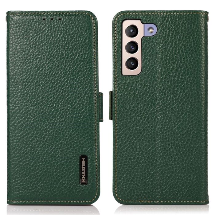 KHAZNEH Galaxy S23 Plus Fodral Litchi Äkta Läder Grön