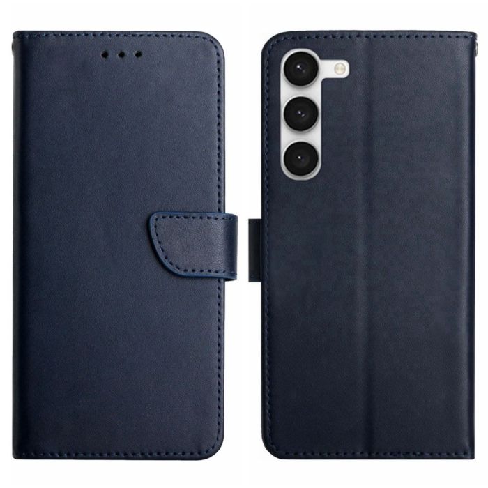 Galaxy S23 Plus Fodral Äkta Läder Nappa Textur Blå