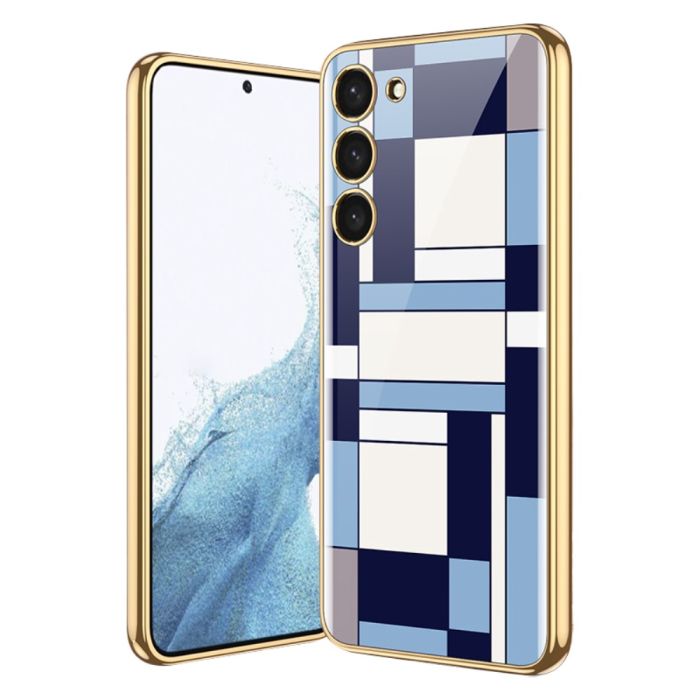 GKK Galaxy S24 Skal Härdat Glas Electroplate Blå/Vit