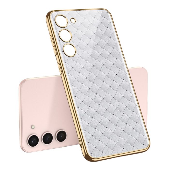 GKK Galaxy S24 Skal Härdat Glas Electroplate Flätad Textur Vit