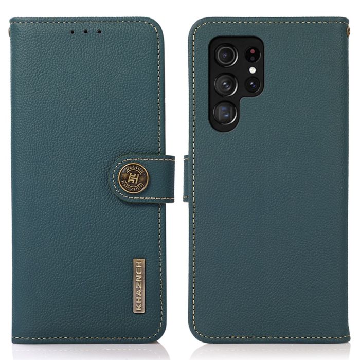 KHAZNEH Galaxy S24 Ultra Fodral RFID Äkta Läder Grön