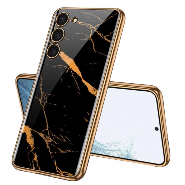 GKK Galaxy S24 Plus Skal Härdat Glas Electroplate Marmor Svart