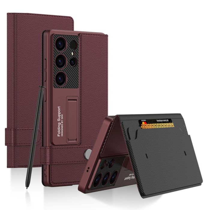 GKK Galaxy S25 Ultra Fodral Kickstand Läder Röd