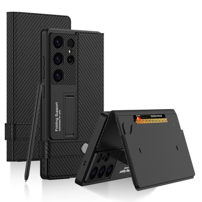 GKK Galaxy S25 Ultra Fodral Kickstand Läder Kolfiber Textur