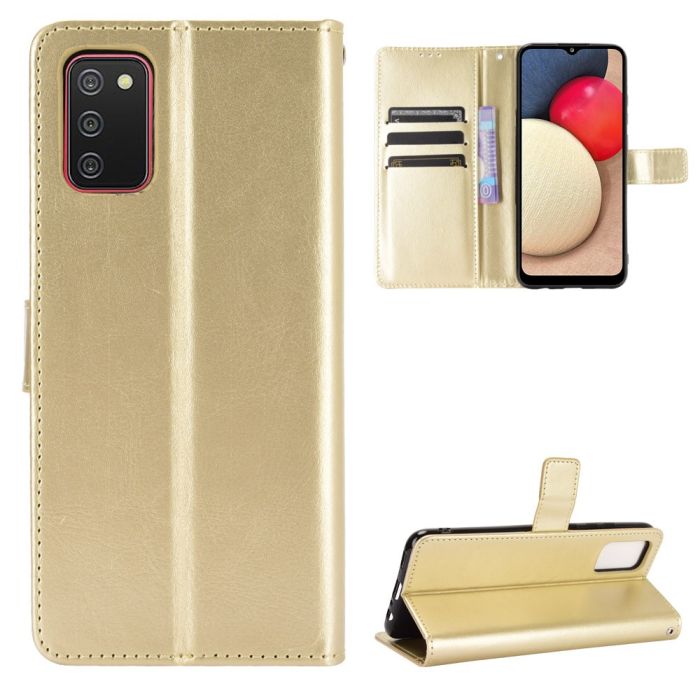 Samsung Galaxy A02s - Crazy Horse Läder Fodral - Guld