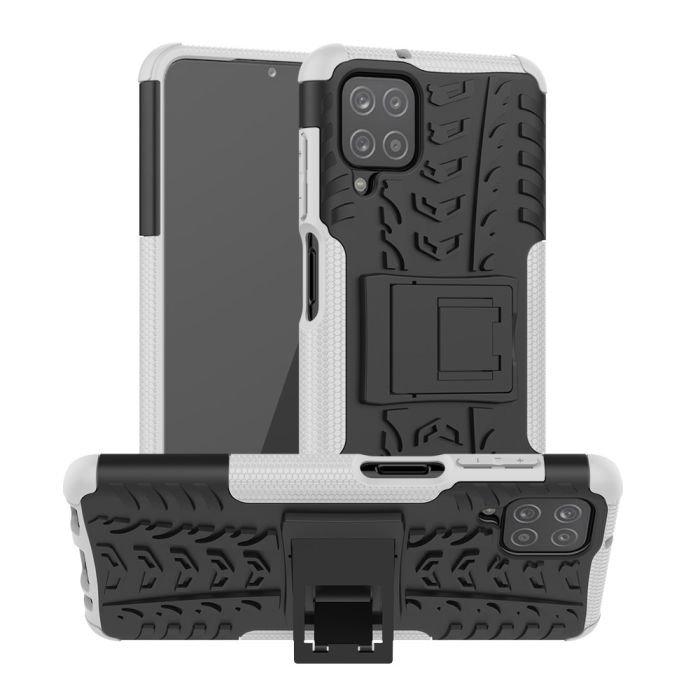 Samsung Galaxy A12 - Ultimata Stöttåliga Skalet med Stöd - Vit