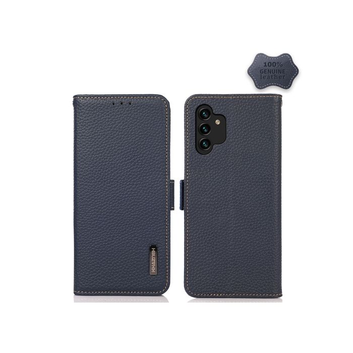 KHAZNEH Samsung Galaxy A13 4G Fodral RFID Äkta Läder Blå