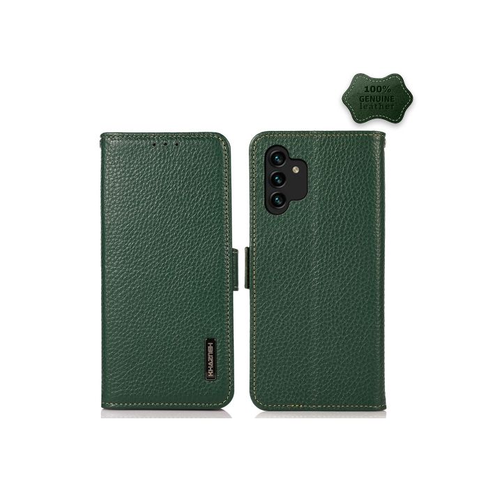 KHAZNEH Samsung Galaxy A13 4G Fodral RFID Äkta Läder Grön