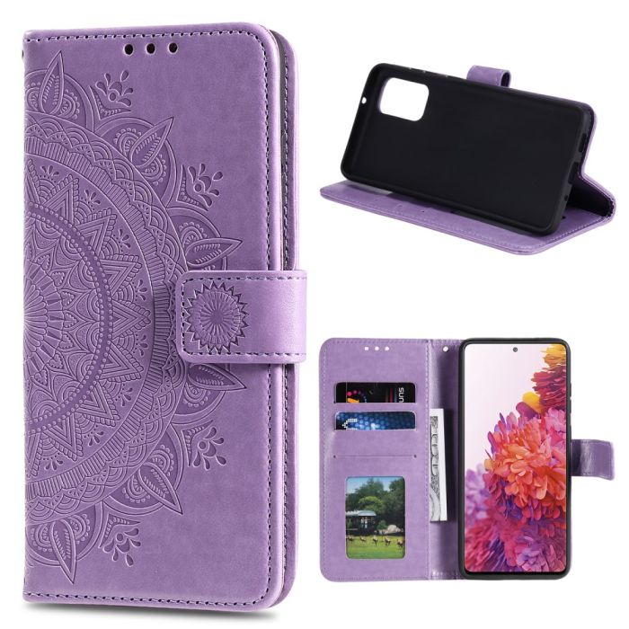 Läderfodral till Samsung Galaxy S20 FE med tryckt mandala, ge ditt fodral ett unikt och snyggt utseende. Fodralet har en magnet stängning som håller din smartphone, ID-kort, kreditkort och sedlar på säker plats.