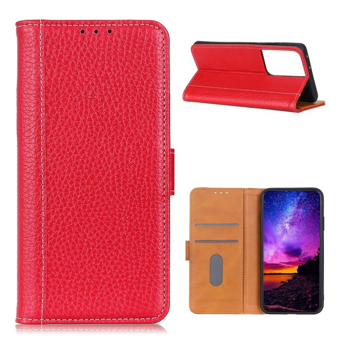 Läder fodral till Samsung Galaxy S21 Ultra med plånboksfunktion i litchi textur. Ge ditt fodral ett unikt och snyggt utseende. Fodralet skyddar effektivt emot stötar, oönskade repor och smuts.
