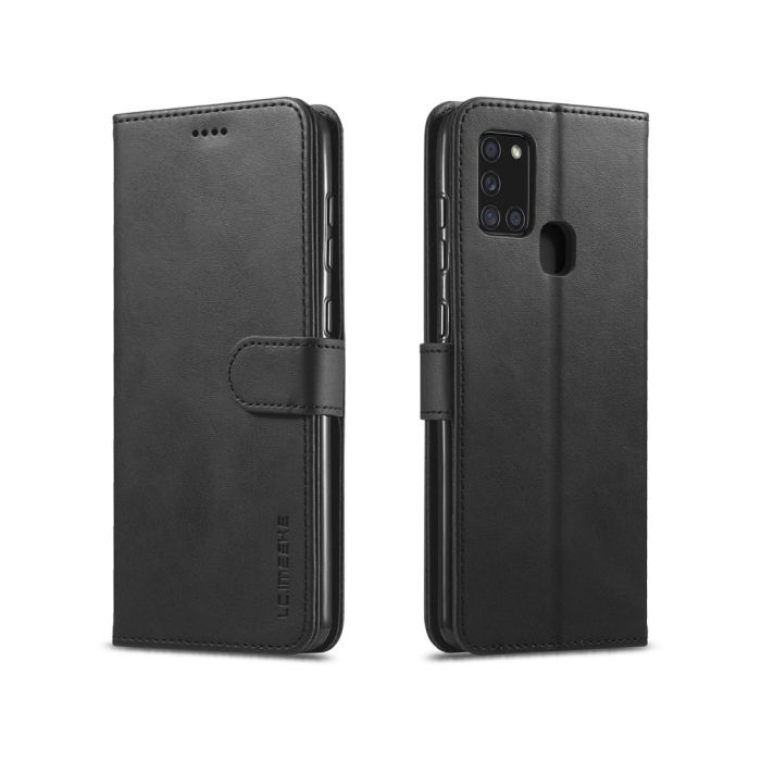 Snyggt och superslimmat fodral i konstskinn från LC.IMEEKE med plånboksfunktion till Samsung Galaxy A21s.