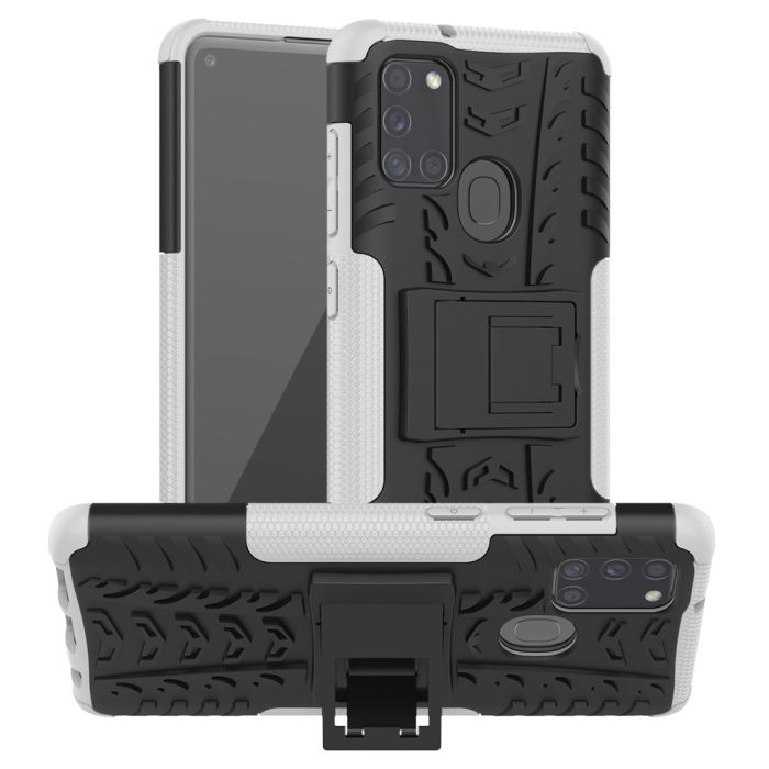 Samsung Galaxy A21s - Ultimata Stöttåliga Skalet med Stöd - Vit