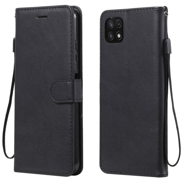 Samsung Galaxy A22 5G - Solid Läder Fodral - Svart