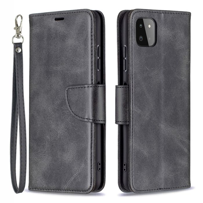 Läderfodral till Samsung Galaxy A22 5G, ge din smartphone ett stilrent utseende samtidigt som du får med dina viktigaste medel. Fodralet har en magnet stängning som håller din smartphone, ID-kort, kreditkort och sedlar på säker plats.