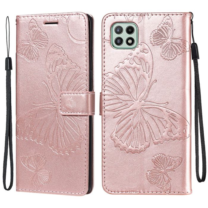 Samsung Galaxy A22 5G - Butterfly Läder Fodral - Roséguld