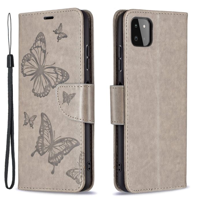 Samsung Galaxy A22 5G - Butterfly Läder Fodral - Grå