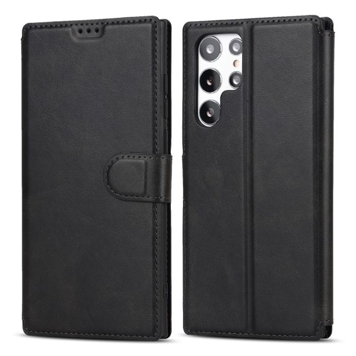 Samsung Galaxy S22 Ultra Fodral Retro Matt Läder Svart