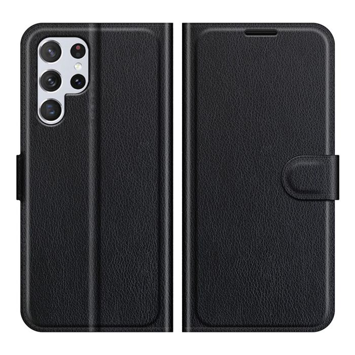 Samsung Galaxy S22 Ultra Fodral Litchi Läder Svart