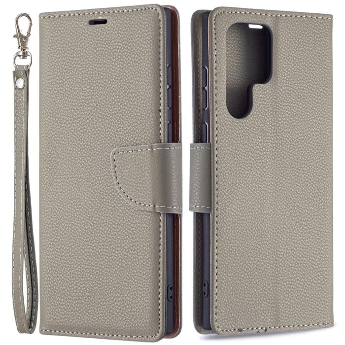 Samsung Galaxy S22 Ultra Fodral Litchi Textur Grå