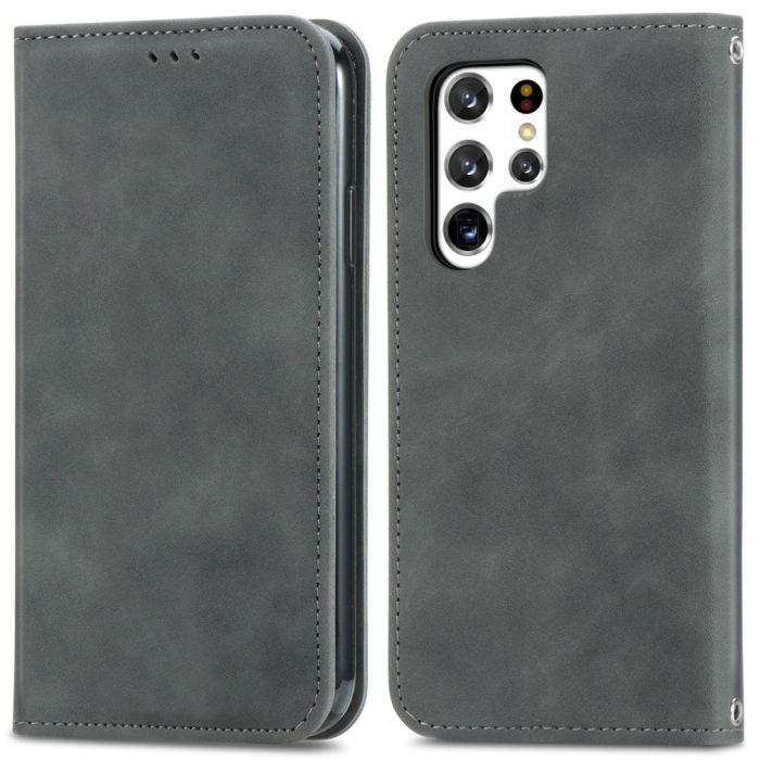 Samsung Galaxy S22 Ultra Fodral Flip Retro Läder Grå