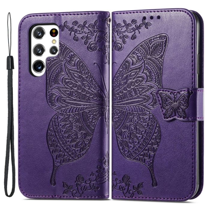 Samsung Galaxy S22 Ultra Fodral Tryckt Fjäril Lila