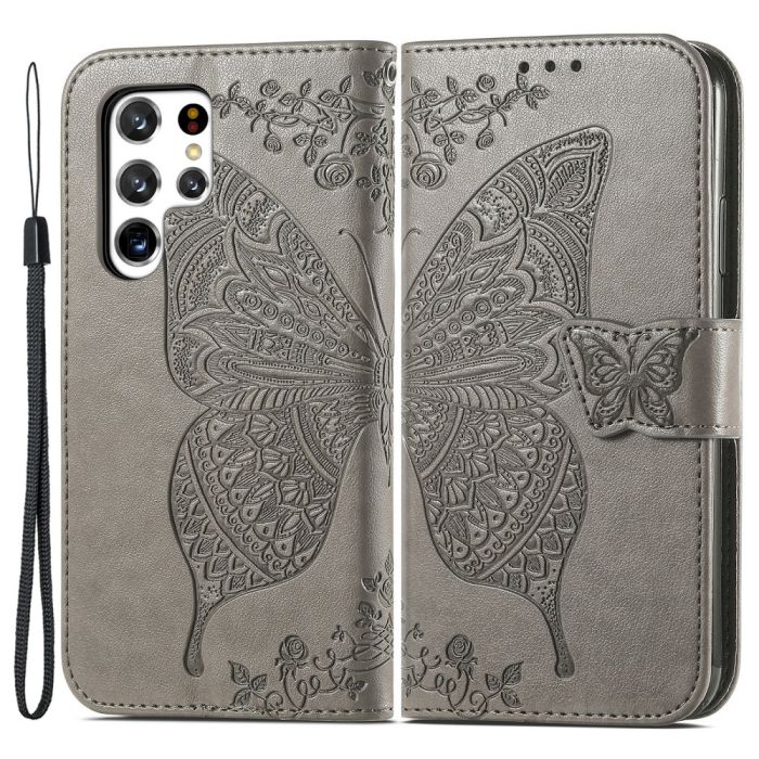 Samsung Galaxy S22 Ultra Fodral Tryckt Fjäril Grå