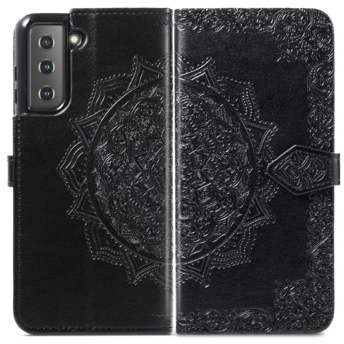 Samsung Galaxy S22 Plus Fodral Mandala Läder Svart