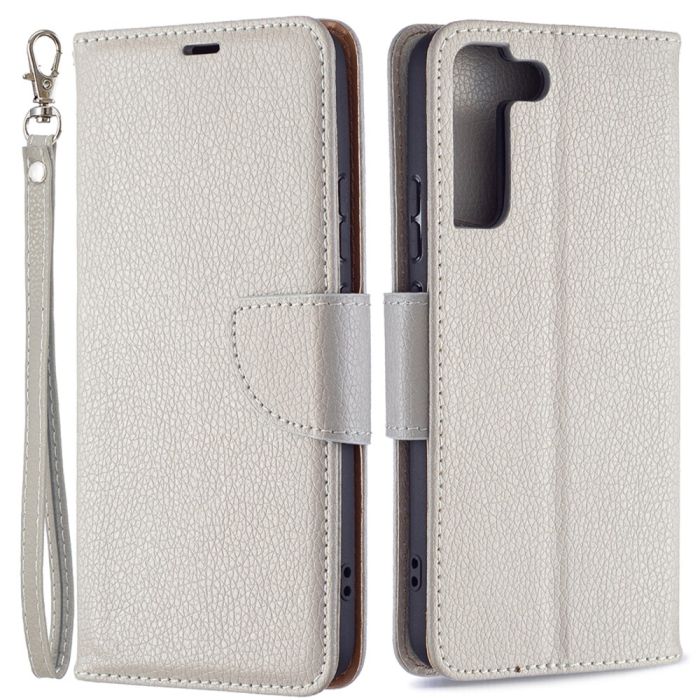 Samsung Galaxy S22 Plus Fodral Litchi Textur Läder Grå