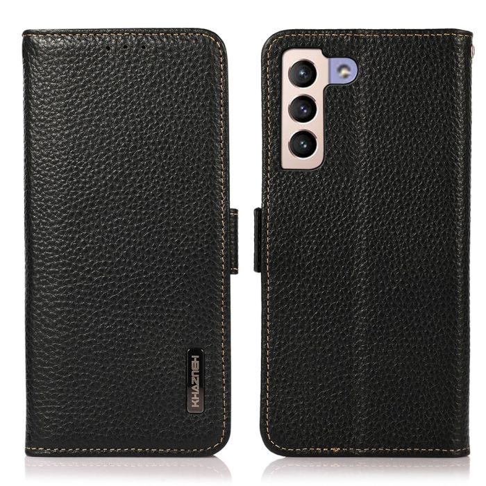 KHAZNEH Samsung Galaxy S22 Plus Fodral Litchi Äkta Läder Svart
