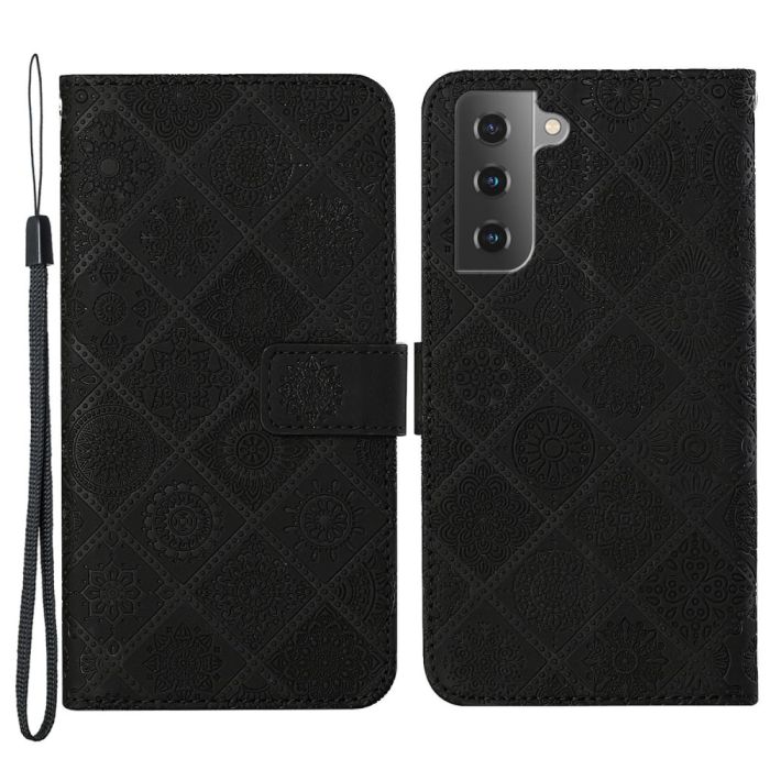 Samsung Galaxy S22 Plus Fodral Tryckta Mandala Blommor Svart