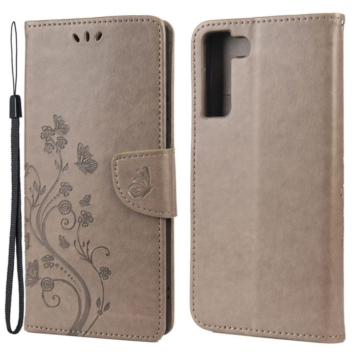 Samsung Galaxy S22 Plus Fodral Butterfly Läder Grå