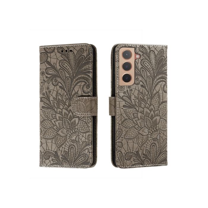 Samsung Galaxy S22 Fodral Flower Textur Grå