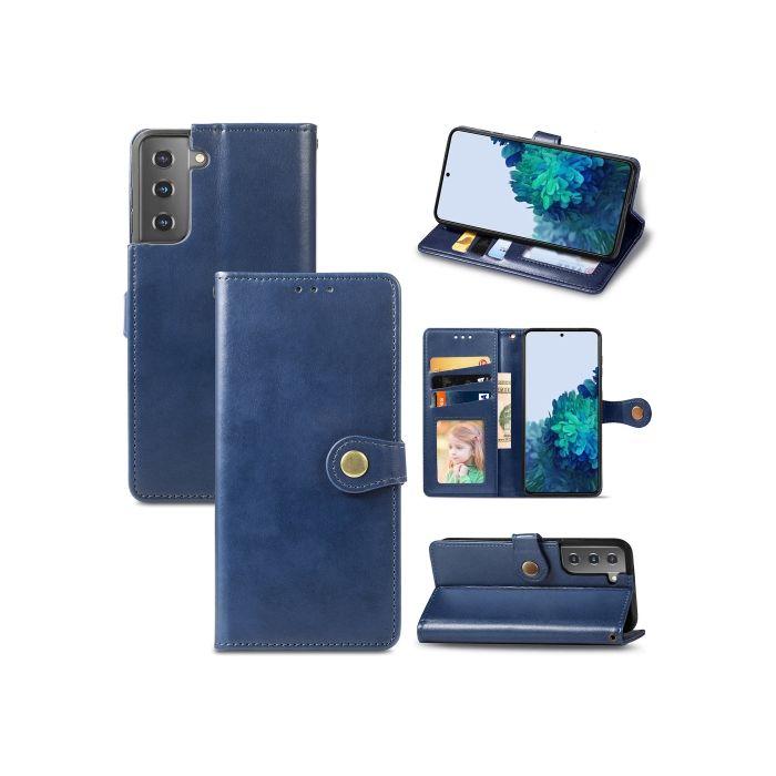Samsung Galaxy S22 Fodral Solid Läder Magnetisk Mässing Blå