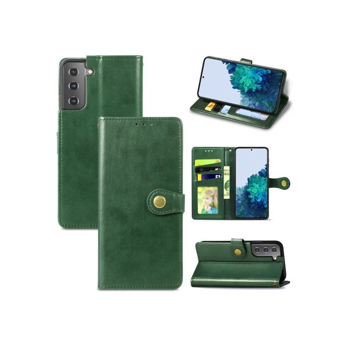 Samsung Galaxy S22 Fodral Solid Läder Magnetisk Mässing Grön