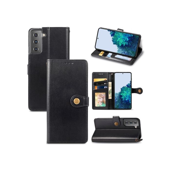 Samsung Galaxy S22 Fodral Solid Läder Magnetisk Mässing Svart