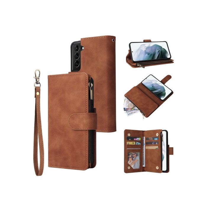 Samsung Galaxy S22 Fodral Multifunktionell Läder Brun