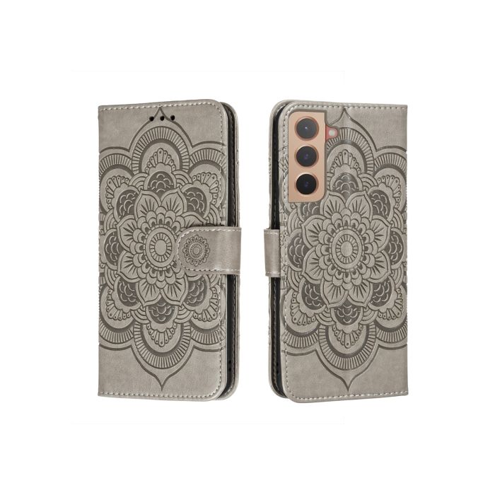 Samsung Galaxy S22 Fodral Sun Mandala Läder Grå