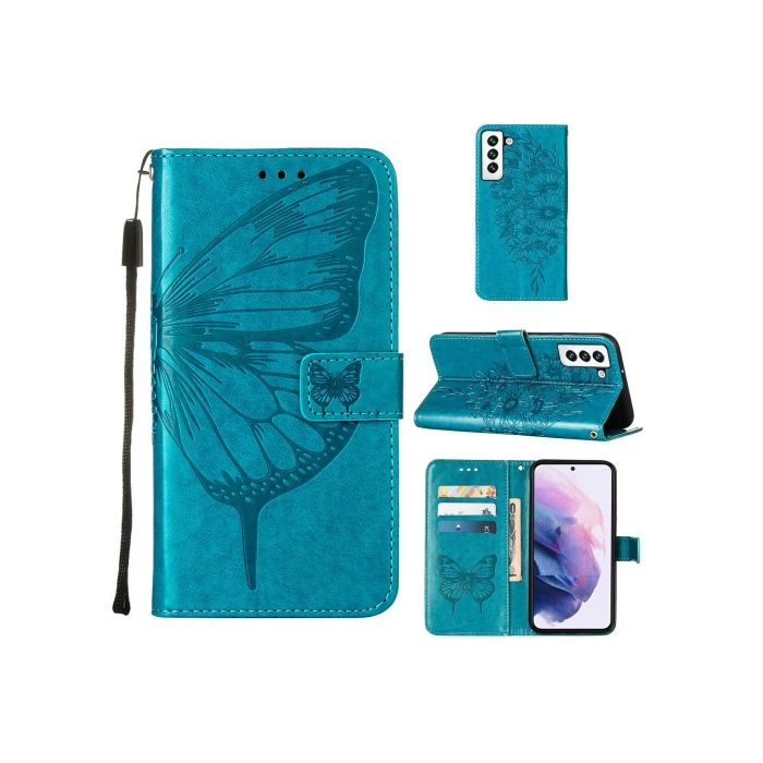 Samsung Galaxy S22 Fodral Butterfly Läder Blå