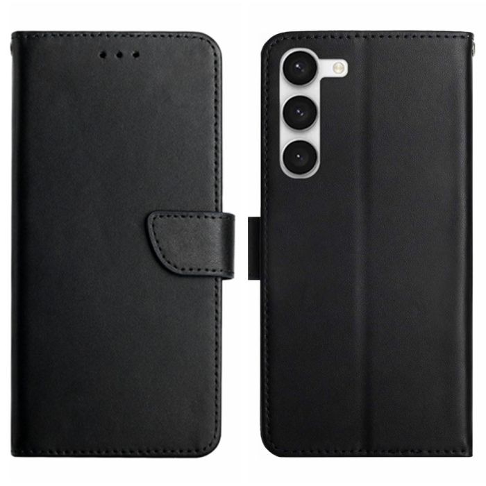 Samsung Galaxy S23 Äkta Läder Fodral Nappa Textur Svart