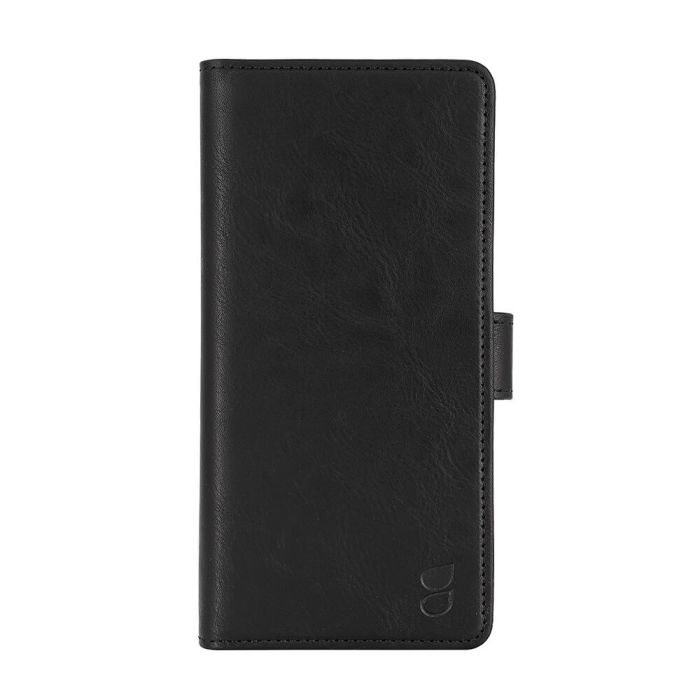 Wallet case in imitation leather where your smartphone is attached to the wallet in an integrated protective removable plastic case. The case is fastened in place using built-in magnet. Three compartments with space for credit cards and driving licenses and a space for banknotes.