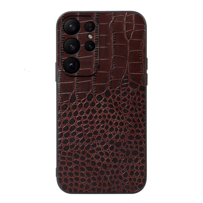 Samsung Galaxy S23 Ultra Skal Äkta Läder Krokodil Textur Brun