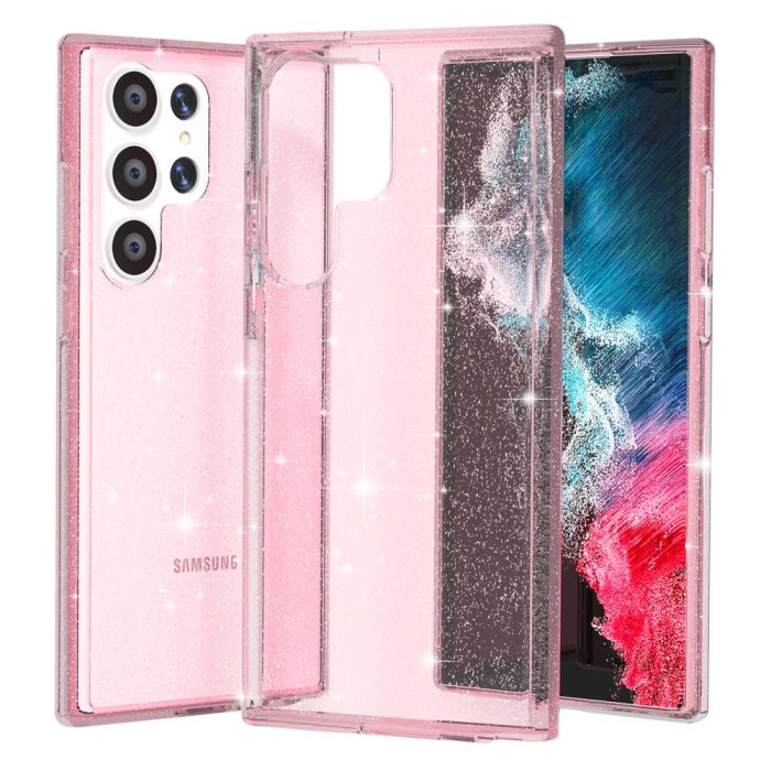 Samsung Galaxy S23 Ultra Skal Glitter Shockproof Hybrid Rosa