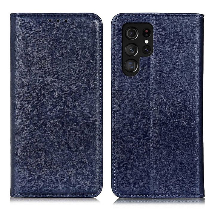 Samsung Galaxy S23 Ultra Flip Fodral Crazy Horse Blå